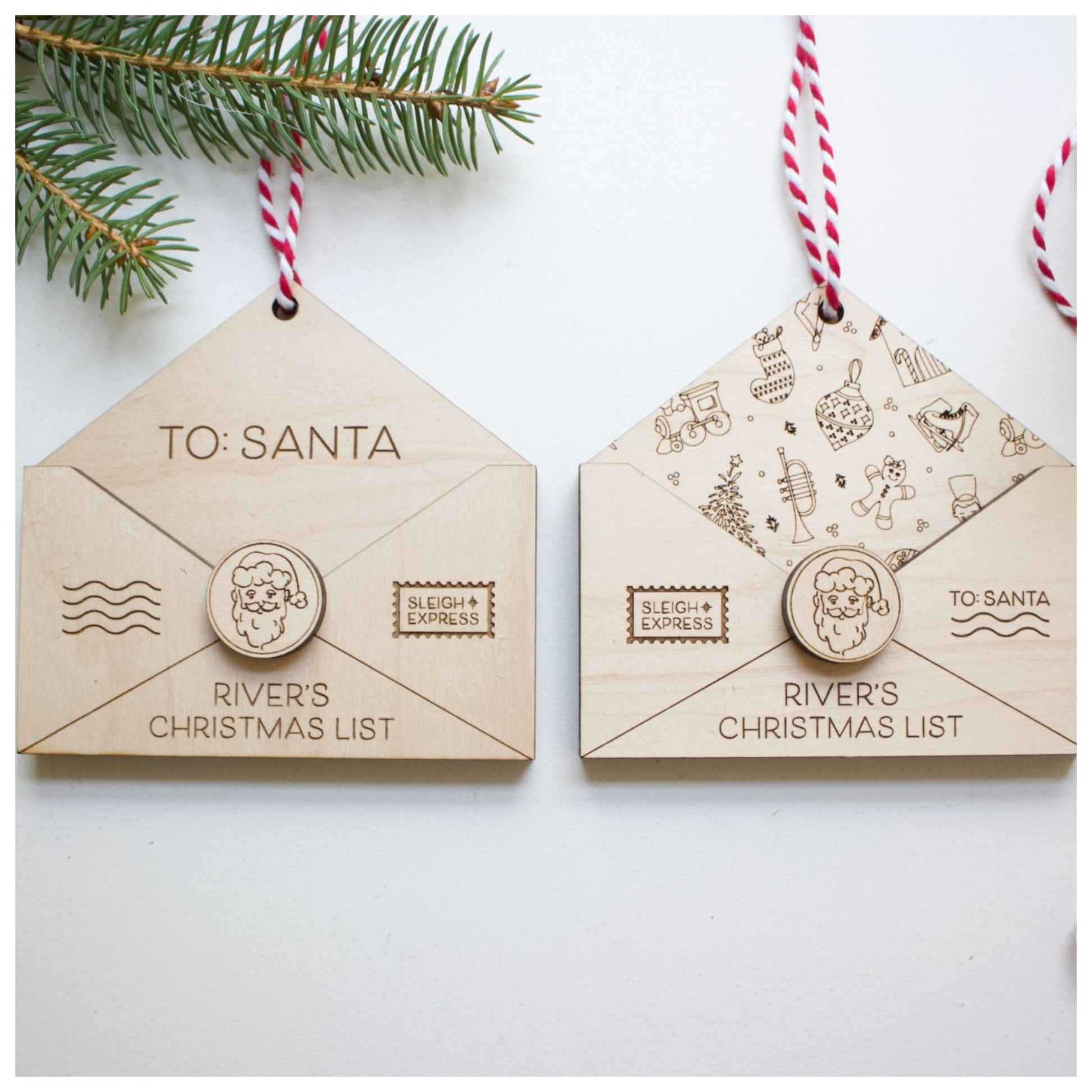 These adorable hand-drawn Christmas list holders comes in the two versions pictured, and the pattern backer on the second design is scored for a super fast printing time! This file has three layers glued together, plus the cute Santa "seal" circle.