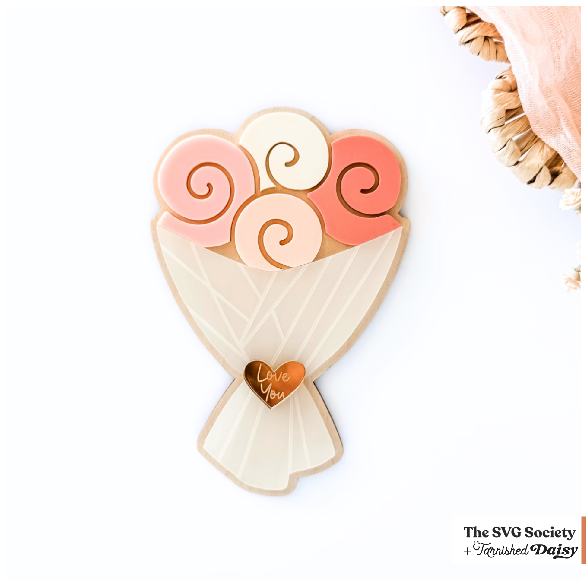 The bouquet measure approximately 4" x 6" and can be scaled as desired. Font pictured is Birdhave.