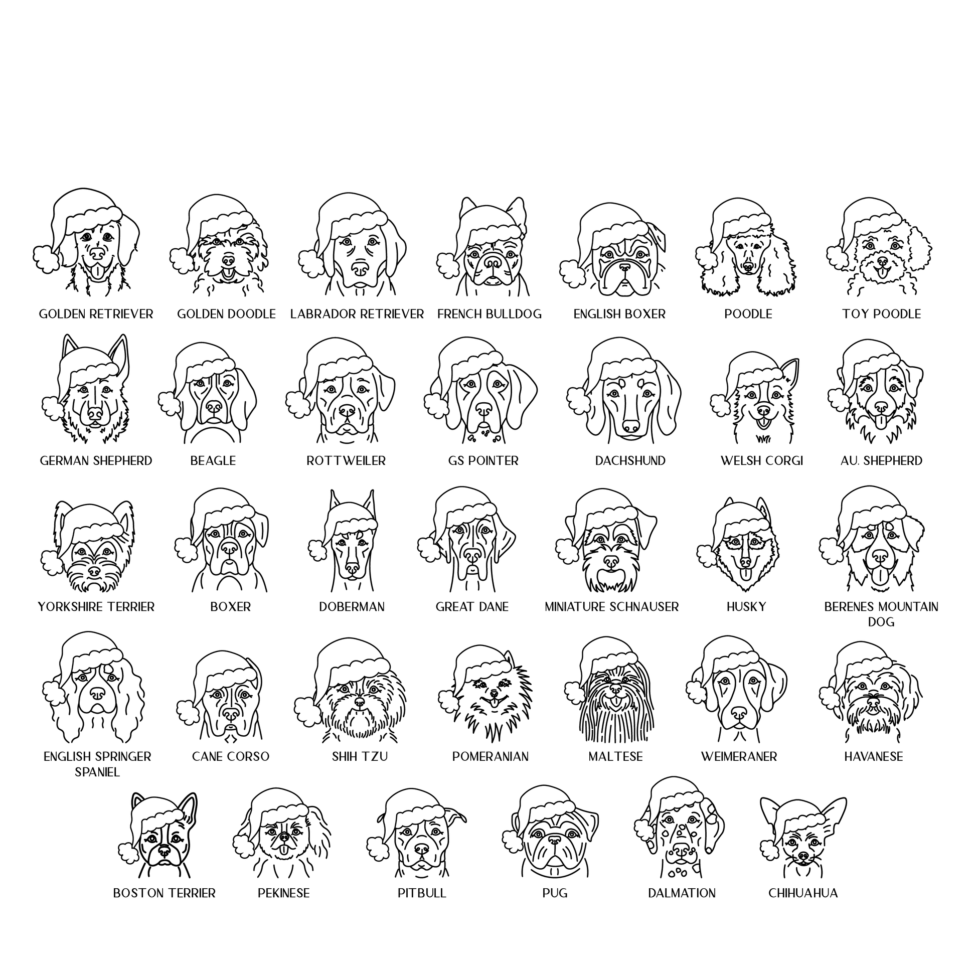 These adorable hand-drawn dog ornaments are perfect for personalizing and gifting! This file includes the 34 most popular North American dog breeds, listed on the second photo.