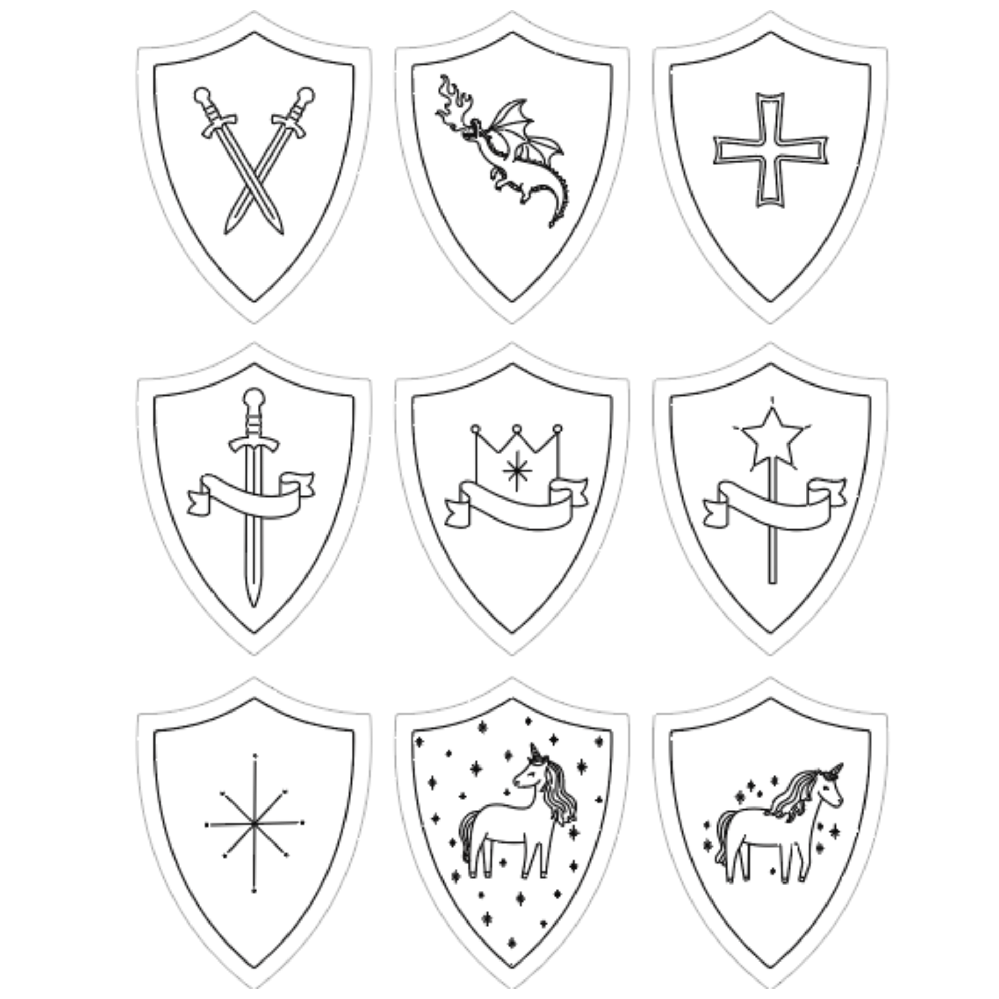 The shields measure approximately 10.5" x 14" and can be scaled as desired.
