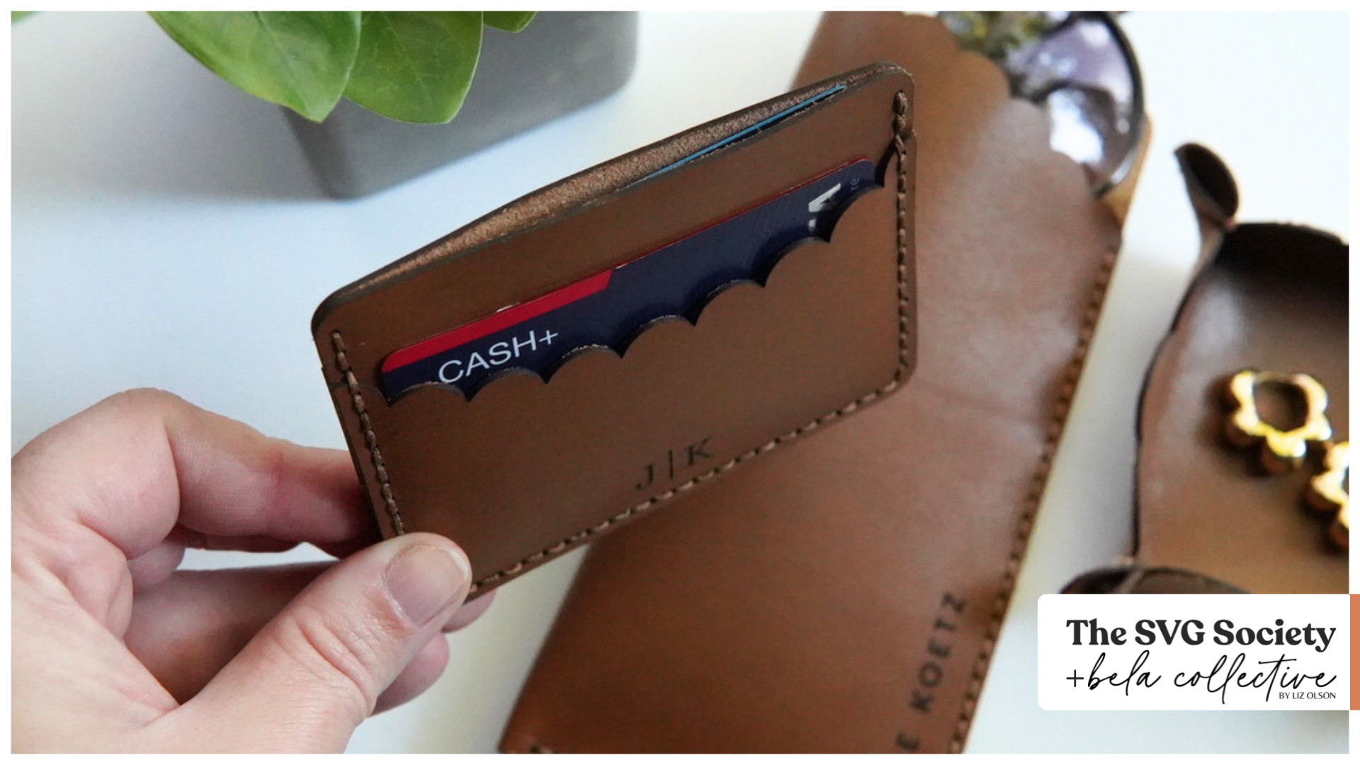 Make your own modern leather accessories with this scalloped SVG set! Includes files for a wallet/card holder, trinket tray, and sunglasses sleeve, as well as detailed instructions and a supply list.
