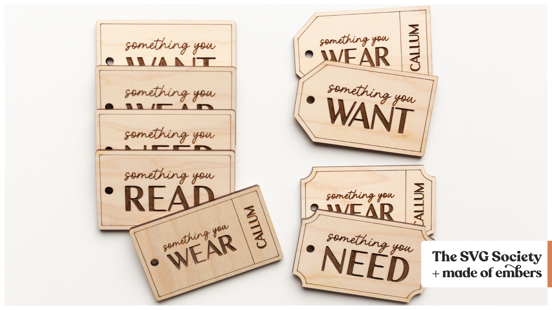 The tags measure approximately 3.75" x 2.25" and can be scaled as desired. Font pictured is Motena Golden by Sub Studio.